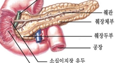 췌장은 위장 뒤쪽에 있는 소화기관 중에 한 개로서 소화효소를 분비해 음식을 소화시키는 외분비 역할과, 인슐린과 글루카곤이라 하는 몸의 혈당을 조절해주는 호르몬을 혈액 내로 분비하는 내분비 역할을 하는 장기입니다. 소화효소를 분비하여 음식물을 소화하고 혈당을 조절하는 인슐린과 글루카곤 호르몬을 분비하는 주요한 역할을 하는 기관이기도 하지요. 무엇보다 탄수화물과 단백질을 분해하는 효소는 위나 십이지장 등 다른 장기에서도 나오지만 유일하게 지방을 분해하는 소화효소는 췌장에서만 나옵니다. 이로 인하여 지방 소화의 핵심이라고 할 수 있습니다.