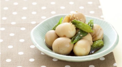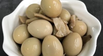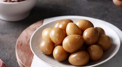 메추리의 알. 계란의 4분의 1 정도 되는 크기로 맛은 계란과 비슷합니다. 그대로 삶아서 소금에 찍어 간식처럼 먹거나 장에 졸여 장조림을 만들어 섭취하는 것이 가장 일반적입니다. 부담 없는 크기 덕에 식당이나 급식에서도 자주 접할 수 있는 음식입니다.