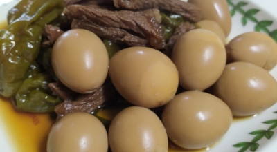 재료 : 메추리알, 돼지사태, 마늘, 청양고추, 월계수잎