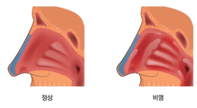 비염은 비강 내(코안)의 염증을 말합니다. 이로 인하여 콧물이나 재채기, 코막힘, 가려움증 과 같은 증상이 나타납니다. 비염은 크게 2종류로 나누며 알레르기성 비염과 만성비염이 있습니다. 급성비염도 있지만 보통은 감기의 합병증 정도로 감기와 일정하게 단기간에 자연치유가 되므로 크게 문제시되지는 않아요. 비염 자체는 중증 질환이라고 보기 어려우나 치료가 쉽지 않고 삶의 질 역시 감소하게 만드는 질환이리고 할 수 있겠습니다. 보통 감기가 긴 시간 낫지 않거나 알레르기성 비염이 오래 지속되면 염증반응이 부비동까지 전파되어 축농증을 일으키기도 하고, 축농증은 비염과 비슷한 증상으로 증상만으로 구분하기란 쉽지 않아요.